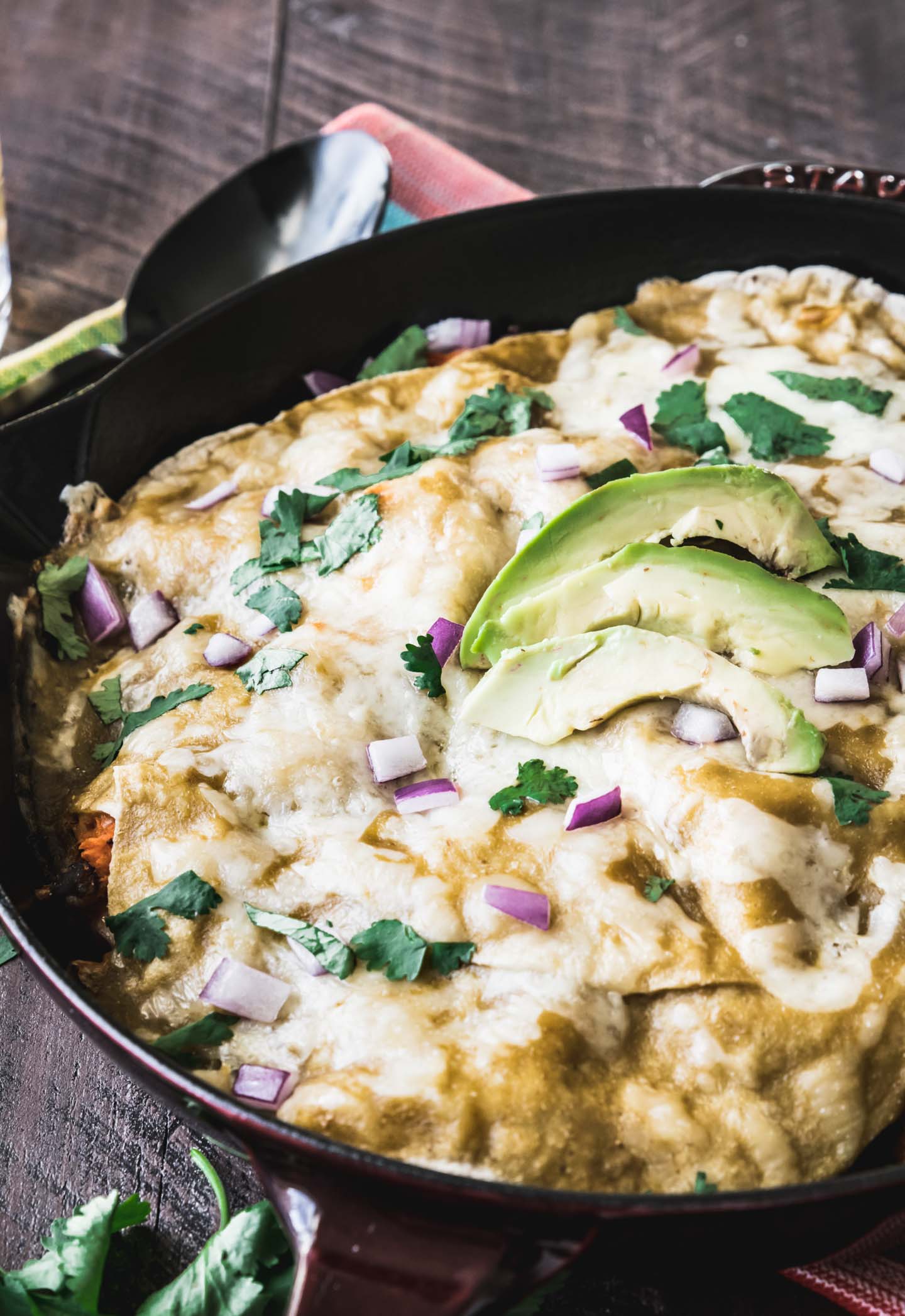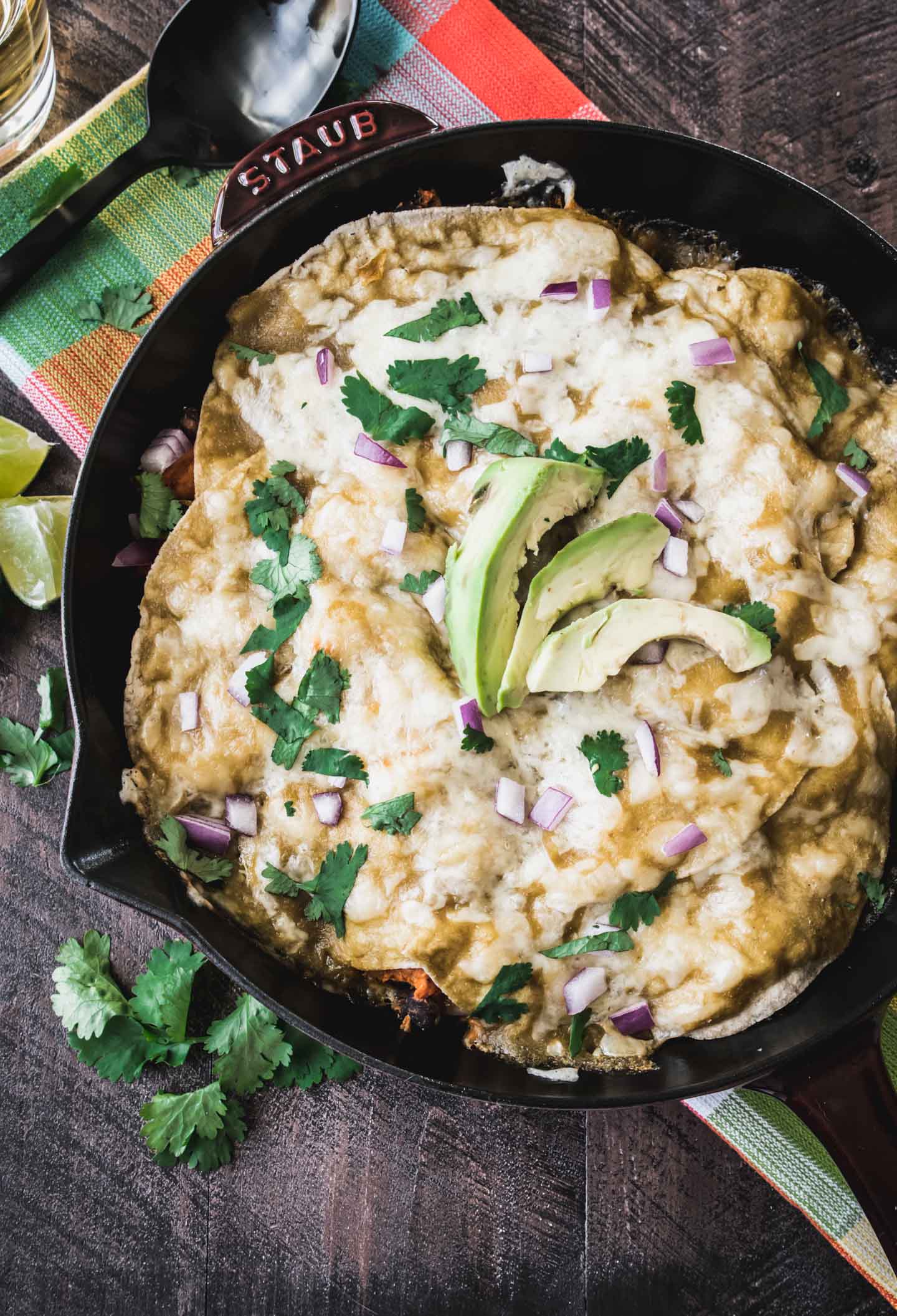 This enchilada skillet combines sweet potatoes and black beans with some classic Mexican flavors of toasty cumin and smokey chipotle to give you the ultimate plant-forward weeknight meal. This one is always a hit even with the biggest of meat eaters!