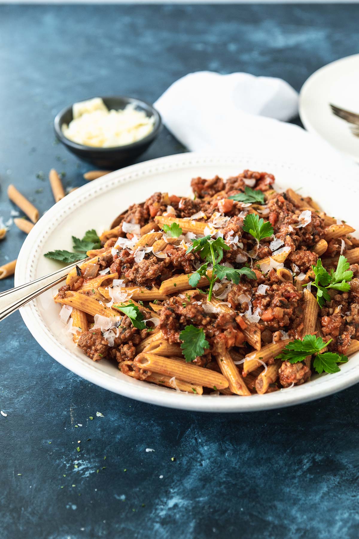 This looks really delicious! I love to make bolognese and I'll have to give your version a try! 🙂 I love to make a big batch and then freeze it for easy dinners later.