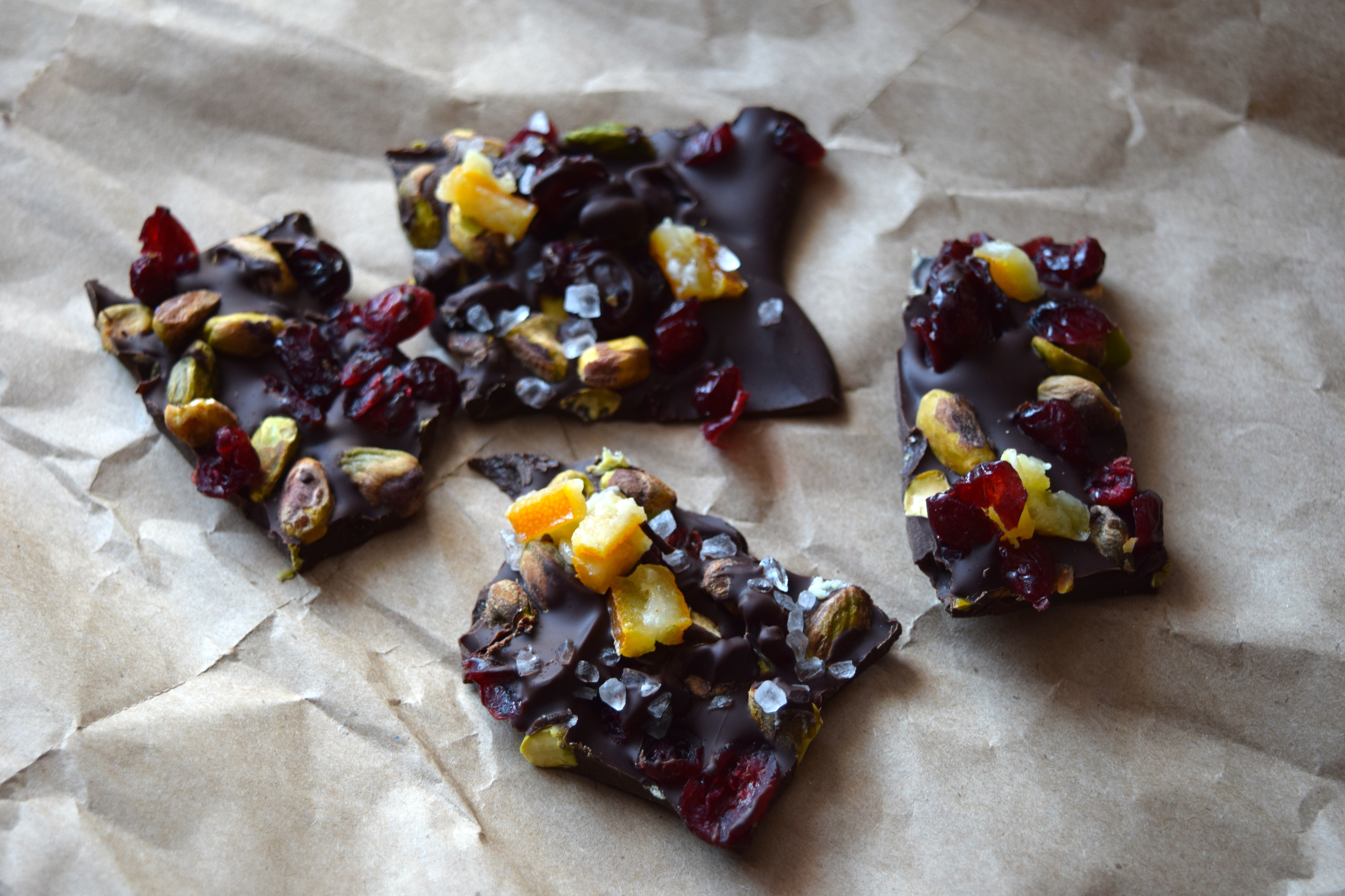 This Dark Chocolate Bark with pistachios, candied orange peel and flaky sea salt makes an excellent edible gift or a great tasting dessert!