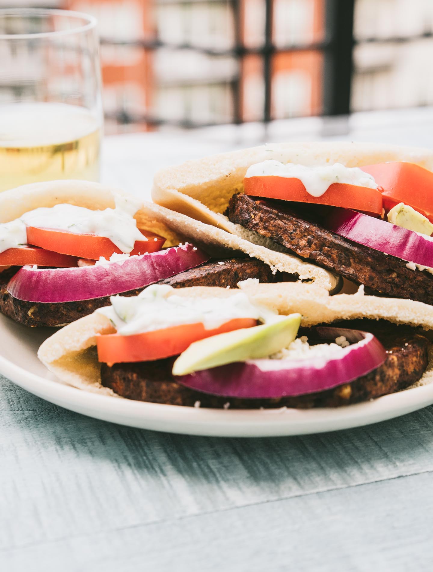 You can make the sauce ahead of time and bring all the fixings with you to your outdoor party. You can even toss the pita bread on the grill for a few minutes while the burgers are cooking for a little extra flavor.