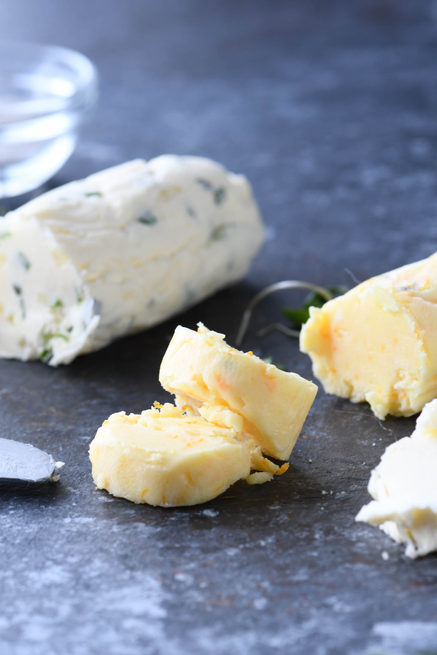 - To easily slice compound butter, run a butter knife under warm water and wipe to dry. Slice the butter into disks.