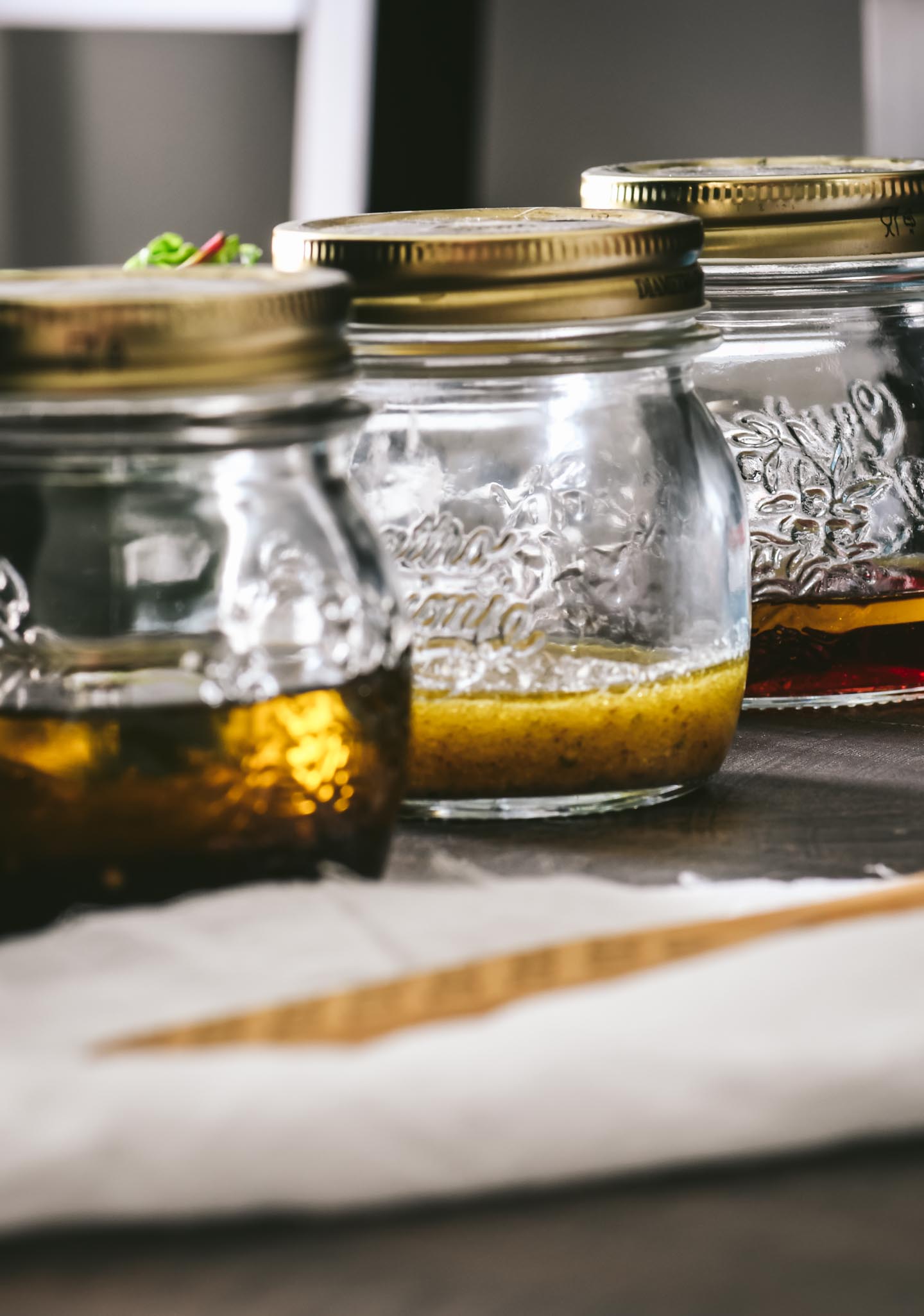 These jars are perfect for homemade vinaigrette! I love how they can double down and hold spices, too! We love to make our own dressing and pack it for a picnic at the cottage.