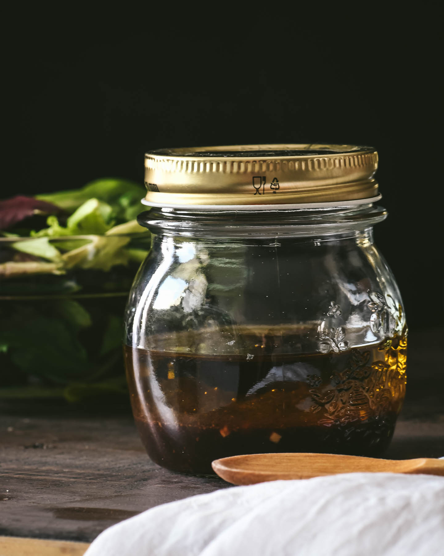 Balsamic: Balsamic vinegar + garlic + honey + olive oil