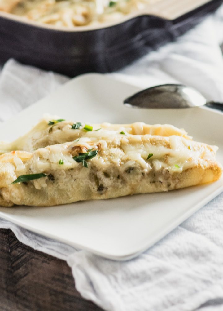 These creamy chicken mushroom crêpes are ideal for an elegant date-night dinner or even a small dinner party!
